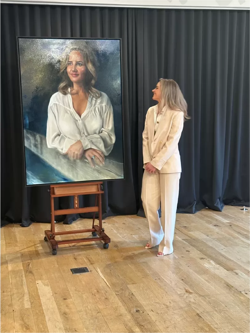 “Woah!” Payne says when she takes a squiz. “It’s a little bit hard for me to explain how I feel. There’s something so special about it but I’m not exactly sure how to put it into words. It’s incredible the way Vincent can capture people. Look at all the portraits around us. Their eyes, the emotions you can feel in every painting. It’s an amazing talent to reveal the essence of another human being. I’m actually really proud of how he’s captured me.”