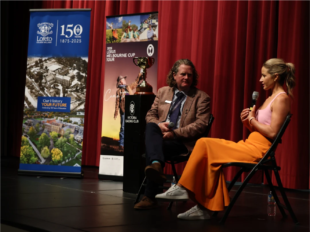Speaking to Year 9 students, Michelle shared stories of growing up as one of ten children in the Payne family, overcoming family tragedy, her memorable years at Loreto, and the determination it took to rise in a male-dominated industry to become the first female jockey to win the Melbourne Cup.